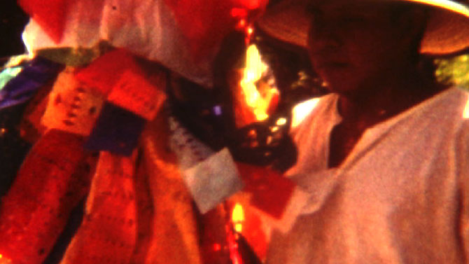 MUCH’TAL JEDZ “DANCE OF THE PIG’S HEAD”. Performative, site-specific intervention, in collaboration with Ofelio Nahuat, Rodolfo Nahuat, Jaime Magana, Ana Rosa Duarte and Alicia Nahuat. (Food prepared in a fire pit, prayers, a small Jaranera band, a decorated pig’s head, bouquets, and dance. Yucatan, Mexico, 5-6 October 2008.)