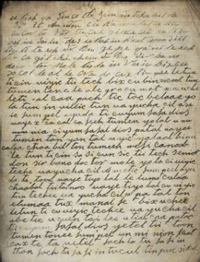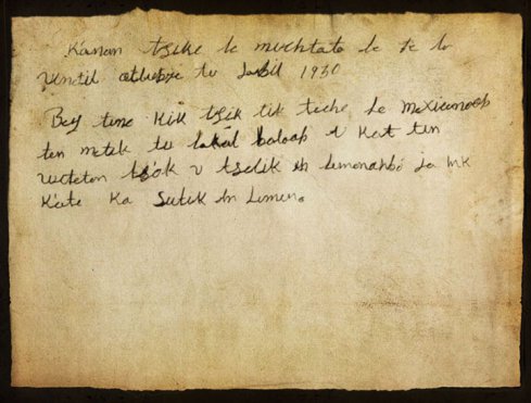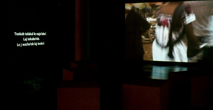 “Much’tal Jedz [ Vereinbarungen ] konzentriert sich auf die  Autonomiebewegung der Maya in den 30er Jahren, einer Zeit, in der die ”rebellischen” Maya spirituell, politisch, diplomatisch und militärisch dem schwachen Krieg der von der mexikanischen Armee und den ländlichen Schulen gegen sie geführt wurde widerstand leisteten. Dies ist eine Geschichte, die von Widerstand gegen die Obrigkeit geprägt ist, die die Beziehung zwischen Nationalstaat, den indigenen Kulten in ihren Urgebieten und ihrer präkolumbianischen Vergangenheit hinterfragt. (Quelle: Katalog der Ausstellung)