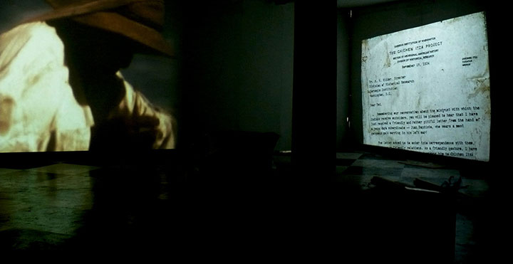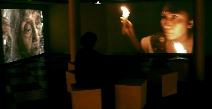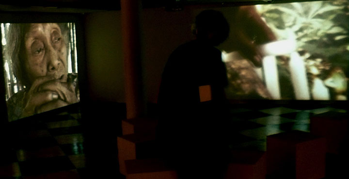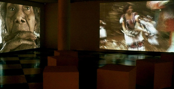 Multi-Video-Projektion, Fünf Audiokanäle, und historische Gegenstände (Yucatan, Mexiko 2009).